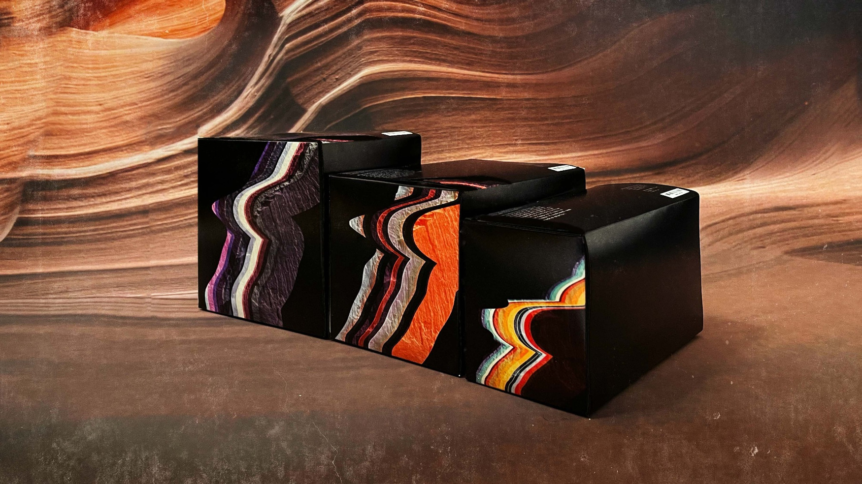 Drawing from the visual vernacular of both soil layers and skin layers, each box pattern is uniquely generated based on the customer’s personalized formula.